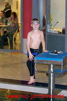 Vereinsmeisterschaft TSV Zirndorf am 05.12.2009 Dieses Jahr fanden die Wettkämpfe erstmals in Zirndorf im Bibertbad statt, da Dietenhofen wegen Krankheit nicht öffnen konnte. Folgende Ergebnisse wurden erreicht: 1. Platz 100m Freistil in 1:40 min 1. Platz 100m Brust in 2:09 min 1. Platz 100m Rücken in 2:07 min 1. Platz 200m Lagen in 4:27 min Mit 385 Punkten belegte Nic den 4. Platz bei der Vereins- meisterschaft 2009 Jugend.