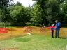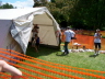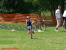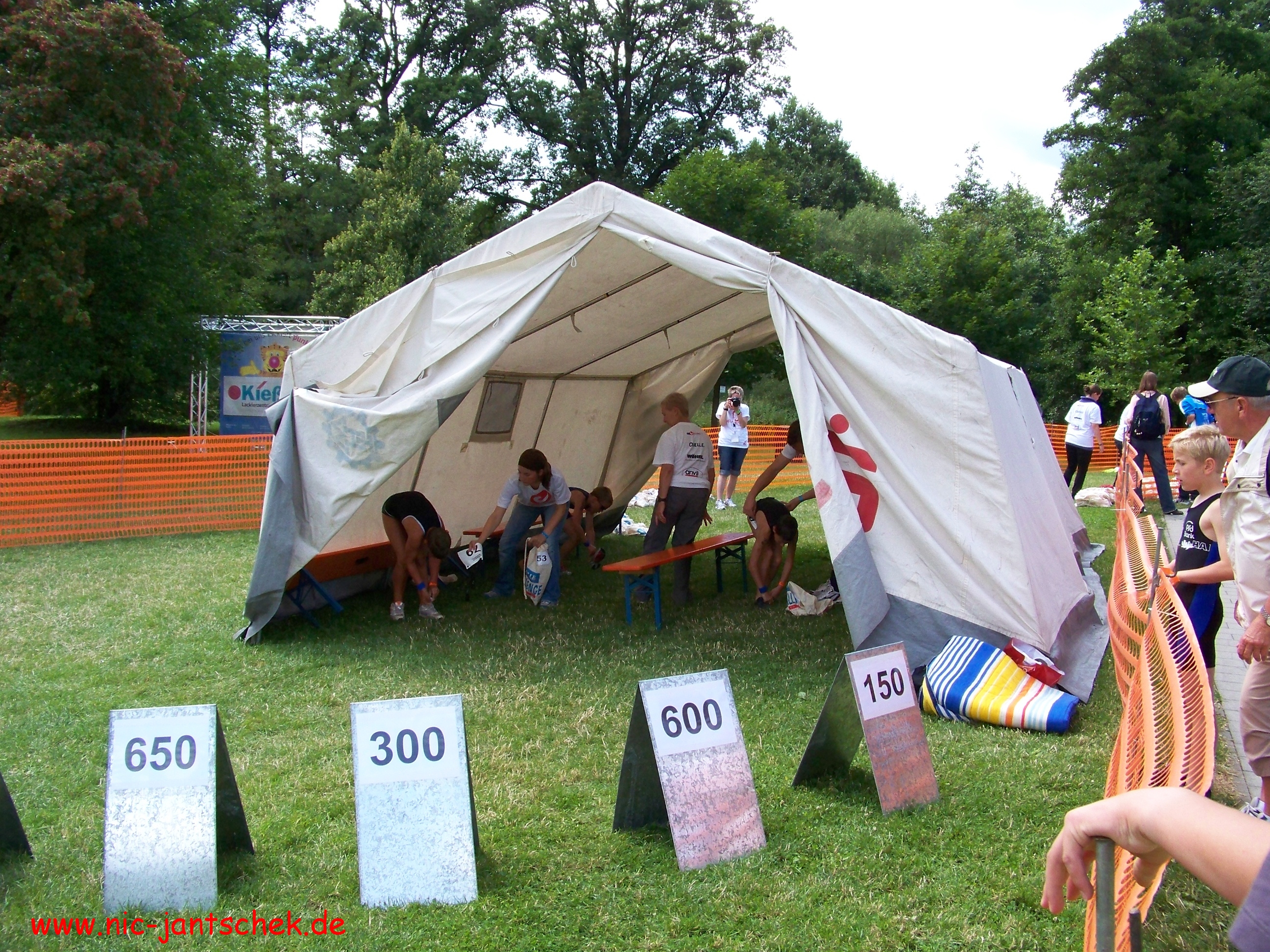In Roth fand am 11.07.2009 der Junior Challenge statt. Die Veranstaltung ist nun auch komplett in das Freibad umgezogen. Wechselzone, Bühne, Verkaufsstände und Gastrobereich sind nun schön überschaubar zusammen. Interessant ist der JCR wegen der nationalen und teilweise sogar internationalen Teilnehmer, die wegen dem am Folgetag stattfindenden Quelle Challenge in der Region sind. Nachdem die Umstände und das Wetter letztes Jahr nicht gerade positiv waren (JCR 2008) stimmte das Wetter zumindest dann schon mal gut. Beim Start zum 100m schwimmen ging dann der Wettkampf schon mit einem verpassten Start von Nic los. Alle schwammen nach dem Countdown bei 0 los. Der sonst übliche Startschuss blieb aus, wodurch Nic gleich mal 5m Rückstand hatte. Nach einer Aufholjagd kletterte er nach 02:22min als dritter aus dem Wasser und machte sich mit dem Wechselbeutel auf in das Wechselzelt. Dort wurde dann den eigenen Jungs von HDI TSG 08 Roth beim anziehen auch noch geholfen. (Bild Nr 7) Als dritter auf die 2,5km Radstrecke konnte er dort mit einer Zeit von 8:00min den vor ihm liegenden überholen. Auf dem Weg in der Wechselzone zum laufen ist er dann mit der Rad an einem Werbebanner hängengeblieben und gestürzt. Der 2. Platz konnte dann aber beim laufen der 400m in 2:50min verteidigt werden. 2.Platz Schüler C in 13:12min. Ergebnislisten