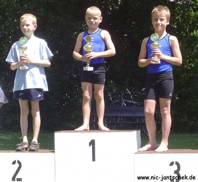 Beim Schülertriathlon 2008 in Hof habe ich meinen ersten Triathlon gewonnen. Und das obwohl ich im Jahr 2008 mit den Jahrgängen 1999 zusammen gewertet wurde.