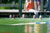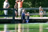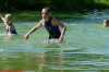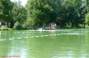 Kurz entschlossen ging es am 16.07. frühmorgens zum Triathlon nach Velburg. Genauer gesagt ins schöne Naturbad nach Altenveldorf. Dort fand der so genannter Kirchweihtriathlon statt. Nach Messung der Wassertemperatur in dem Badesee wurde durch den Wettkampfrichter festgelegt, dass bei den Schülern D,C und B die Schwimmstrecke verkürzt werden muss. Nic musste statt der 150 m nur noch ca. 75 m im Badesee absolvieren. Der Start erfolgte in allen Altersklassen (Schüler D bis Jugend A) gleichzeitig. Nic ging als erster seiner Jahrgangswertung aus dem Badesee und danach auf die 2,4 km lange Radstrecke. Die Runde war asphaltiert und führte Richtung Velburg und zurück. Als erster vom Radfahren zurück musste Nic noch zweimal um den Badesee laufen. Er finishte in einer Zeit von 11:57 min. 1. Platz Schüler B.